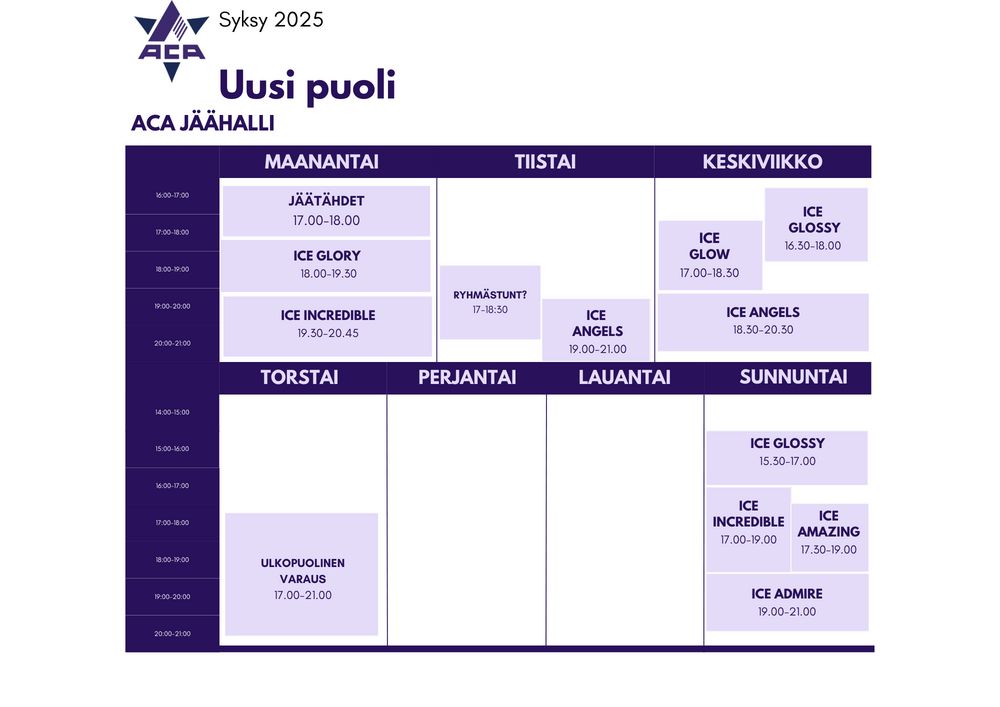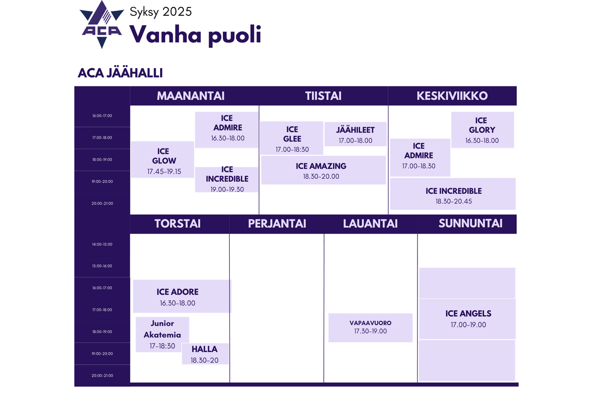 Seuran cheerjoukkueet harjoittelevat ACA Jäähallissa osoitteessa Hallitie 9, Prisman läheisyydessä.