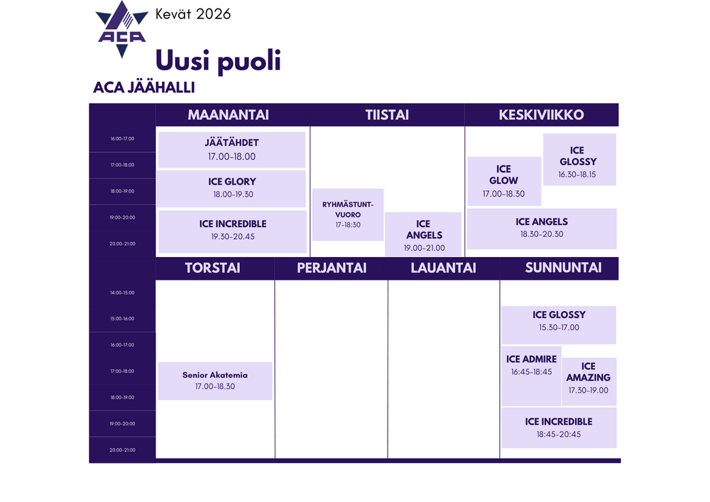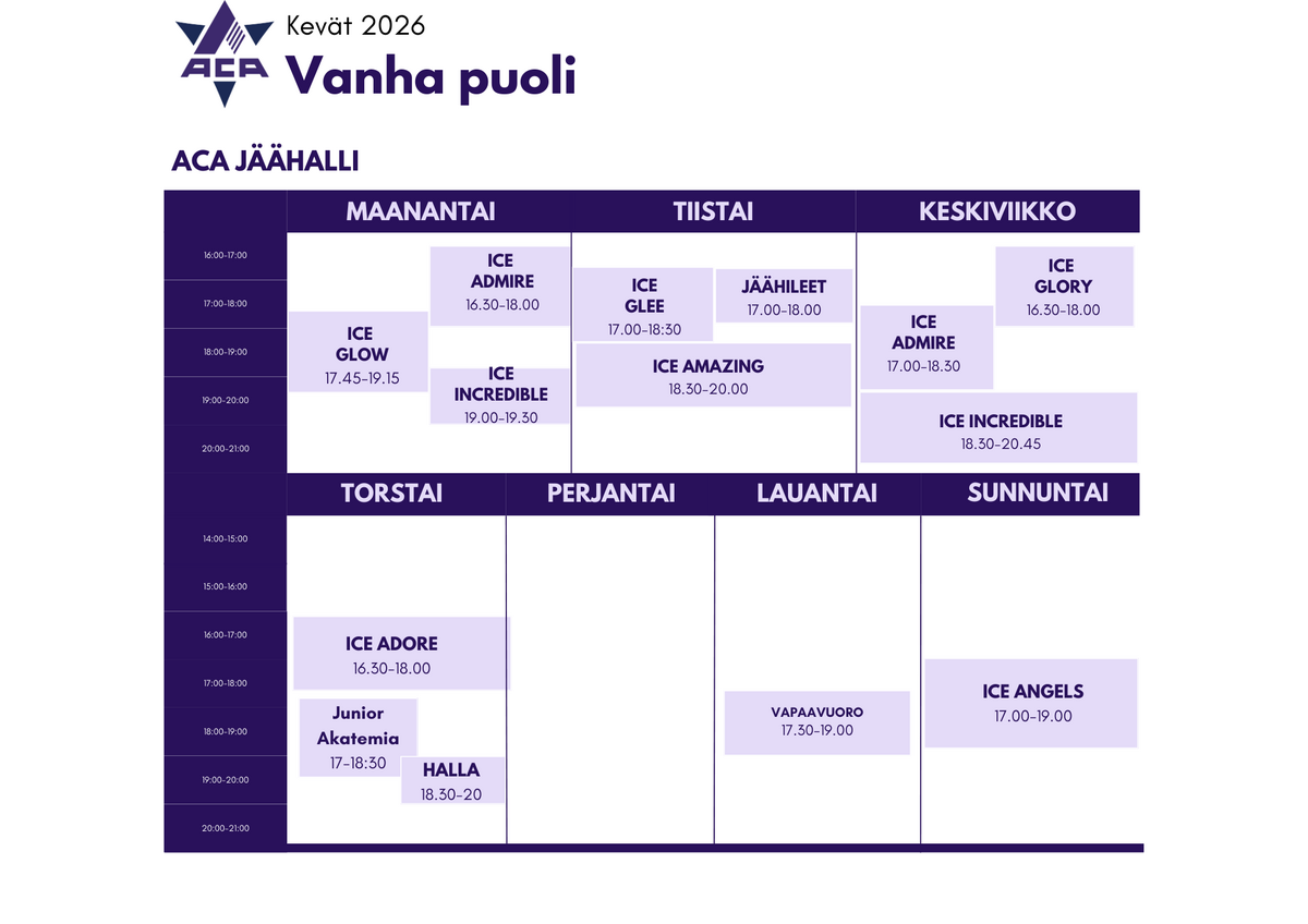 KEVÄÄN 2026 HARJOITUSVUOROT